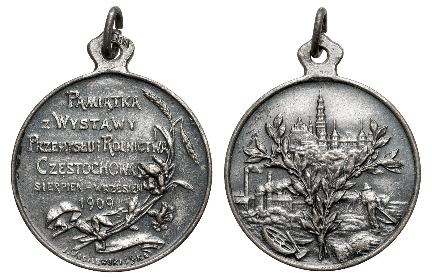 Wystawa przemysłu i rolnictwa w Częstochowie, 1909, medal sygnowany J. Wasilewski, na uszku punca J.W, srebro, 25 mm, 7.66 g, Strzałkowski 109 R